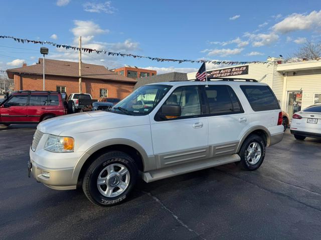 2005 Ford Expedition Eddie Bauer. 5.4 Triton V8 engine. Automatic transmission. 4x4. One Owner! 136k miles. Runs & drives great! NO check engine lights. Cold AC. Power windows. Power locks. Cruise Control. Remote keyless entry. Tow package. 3rd Row seating! Rear DVD. Very nice condition with only minimal rocker panel rust as shown in photos. Overall very good shape for the age. We just had all new spark plugs & coilpacks replaced. Clean title. Comes with both Safety & Emissions inspections and is Ready to Go! 30 day temporary tag included. Pricing this one at Only $7,950 cash or your own financing. NO payments. Please give us a Call or Text! 636-629-1809. Thank you!